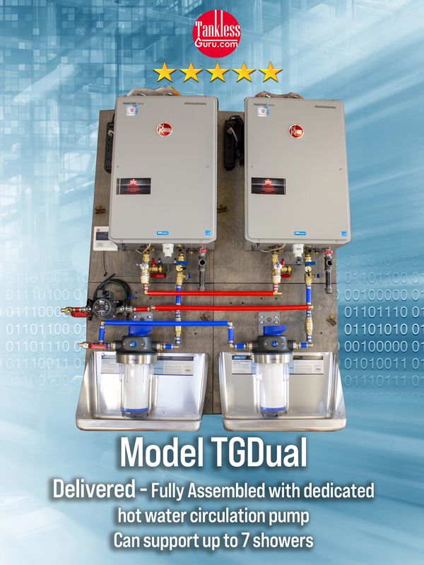 The number of tankless units needed in a home is based on the number of showers you have. ie, a 3-4 shower home only requires one TGP Rheem/Culligan Pre-Assembly Tankless System